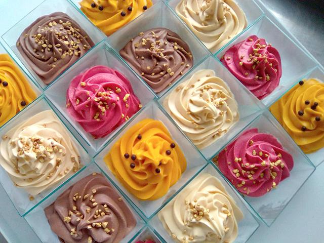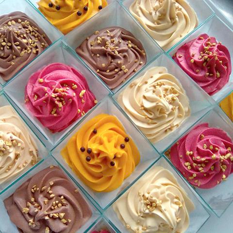 Mignardises glacées sur fond de génoise. Différents parfums au choix: